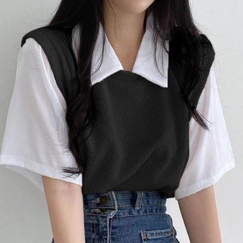 [셀러허브_여성트랜드패션]여자 조끼 봄여름 반소매 코디 스웨터 셔츠
