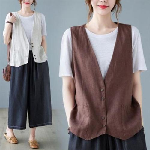 [오너클랜]인기상품 버튼 인기 은창)더블 린넨 베이직 감성 조끼 여름 베 [WFGV2G0_250919]