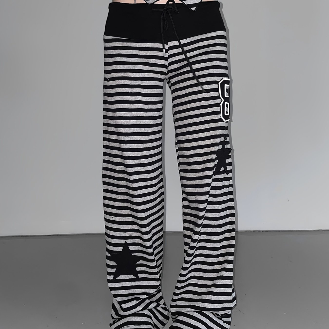 TEMU 미국 Y2K 레트로 스타 여성 캐주얼 바지, 대비되는 드로스트링 허리, 레그 롱 트라우저 - 홈웨어