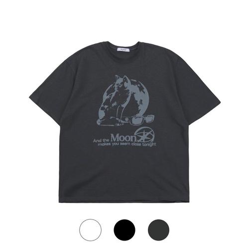 [모로엠]남녀공용 봄여름 커플룩 고양이 프린팅 반팔티 RM-TSH-MOON