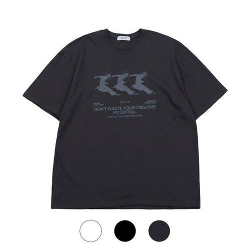 오버핏 반팔 라운드 티셔츠 남녀 공용 커플룩 여름용 WFLN938