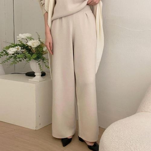 |CSP940C|여성 두꺼운 와이드핏 울 니트 팬츠 간절기 밴딩 겨울용 바지