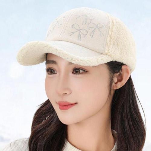 [에이치플러스몰]여성 겨울 리본 패턴 뽀글이 볼캡 야구 모자 캡모자
