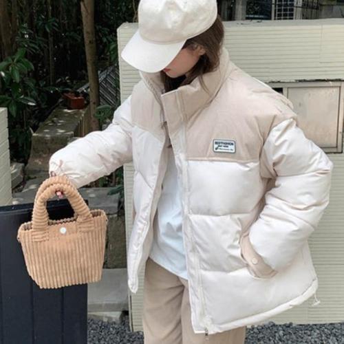 캐주얼패션 세련된 은은한 여성점퍼 패션 질감 배색 골덴 점퍼 디자은 겨울패딩