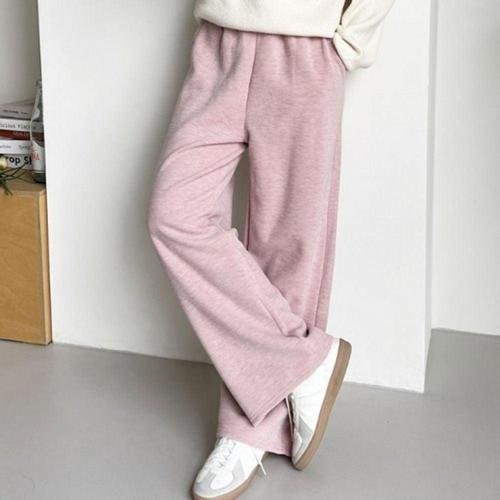 여성 기모 와이드 팬츠 겨울 밴딩 바지 캐주얼 루즈핏 트레이닝 WFN068R