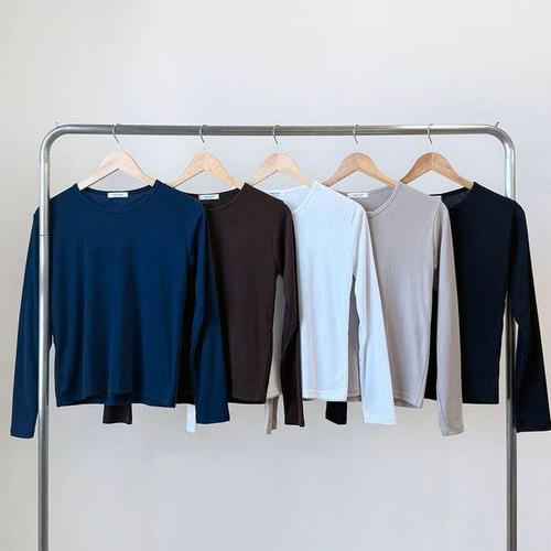 [옷자락]여성 심플 라운드넥 긴팔티 기본핏 스판 티셔츠