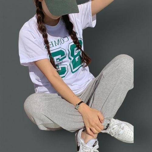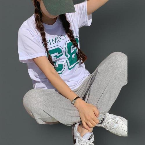 [신상오픈런]여성 키치무드 면혼합 레터링 기본핏 반팔 티셔츠