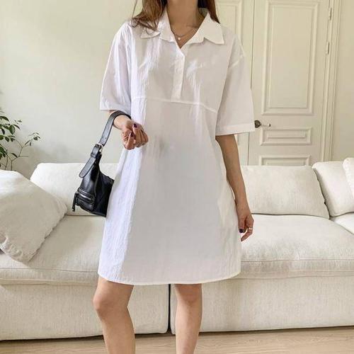 [에이치플러스몰]여름 셔츠 주름 온나핏 뷔스티에 니트 원피스