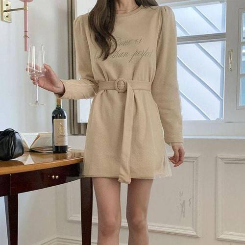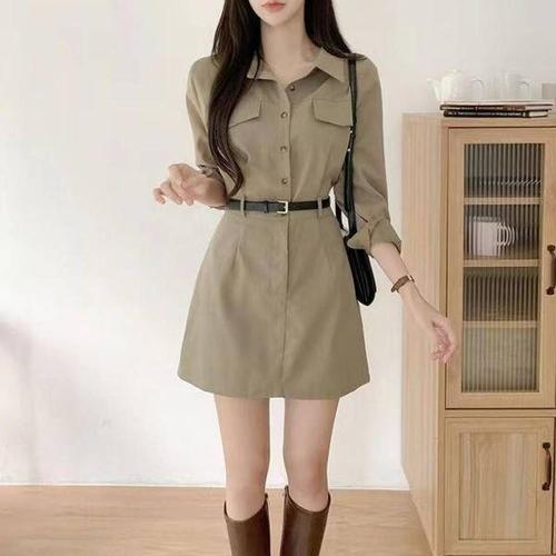 [에이치플러스몰]미니 카라 롱니트 셔츠 여름 트위드 벨트 하객