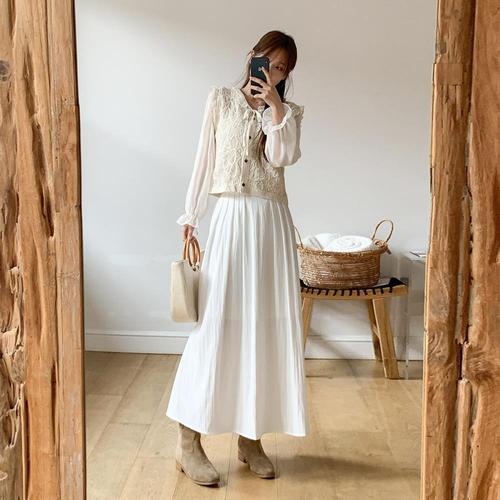 [옷자락] 여성 프릴 쉬폰 셔츠 펀칭 면 니트 조끼 세트