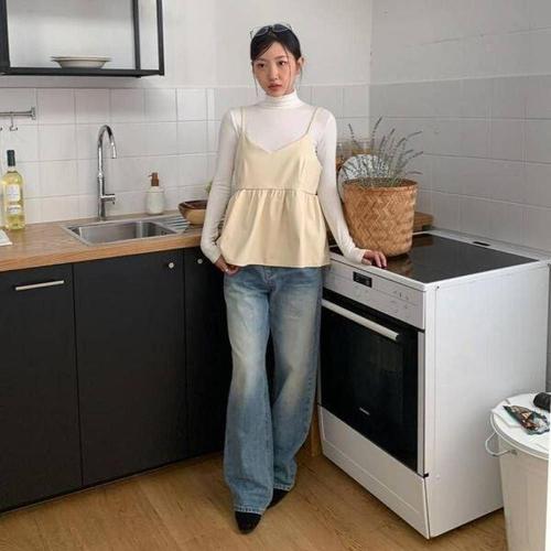 [에이치플러스몰]하객 쉬폰 롱니트 데님 뷔스티에 휴양지 트위드