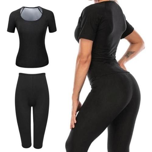 여성 발열소재 쫀쫀스판 반팔땀복 상하셋트(하의7부)