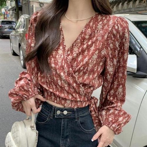 주름 퍼프디테일 랩로맨틱 베스트 퍼프소매 슬리브 탑 WFJIVVH