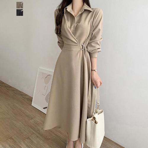 [페이릿] 허텐 클래식 랩 무드 벨트 셔츠형 롱원피스