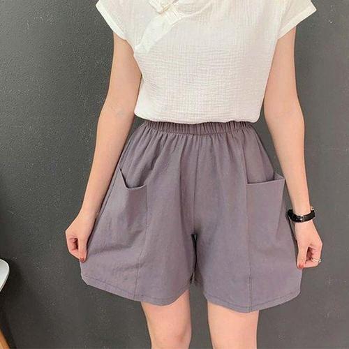1+1 여름 썸머 베이직 린넨 와이드 바지 팬츠 여자 면 마 린넨바지 캐주얼 반바지 D99U
