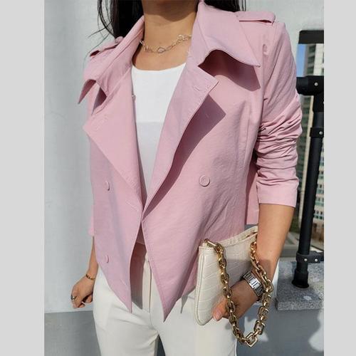 [바이어스]봄 여자 크롭 더블 긴팔 카라 바바리 숏 자켓 코디 룩 (13308730A)
