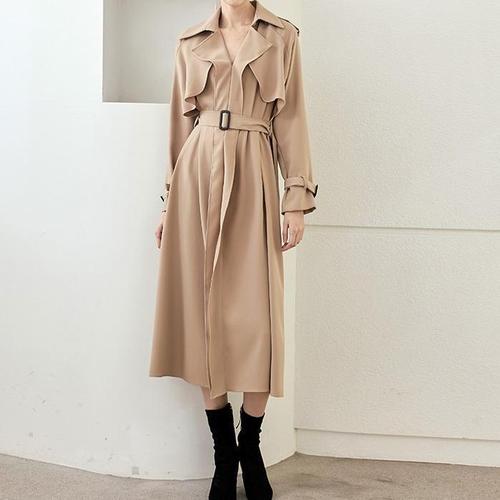 [바이어스]여자 러플 벨트 세트 프릴 트렌치 바바리 자켓 원피스 (11372042A)