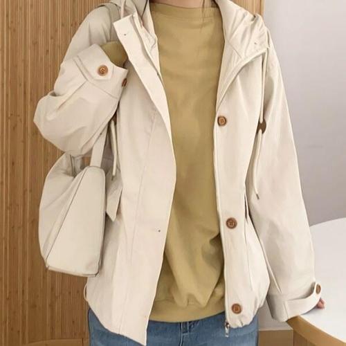 [드리다]DJ21206 여성 봄 여름 간절기 바람막이 경랑 캐주얼 스트링 사파리 야상 아우터 하프 점퍼 미시..