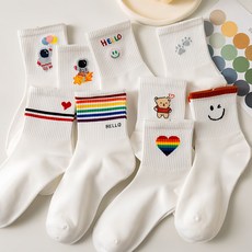 쓸리보 여성용 귀여운 중목 화이트 패션 양말 10종 세트