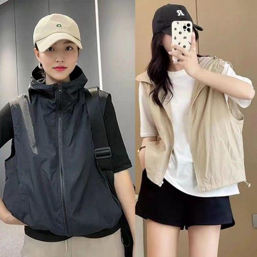 ANYOU 여성 여름 조끼 바람막이 후드집업 루즈핏 자외선 차단 얇은 방풍 조끼