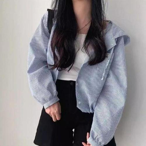 [신상오픈런]여성용 일상 캐주얼 스트라이프 크롭 셔츠