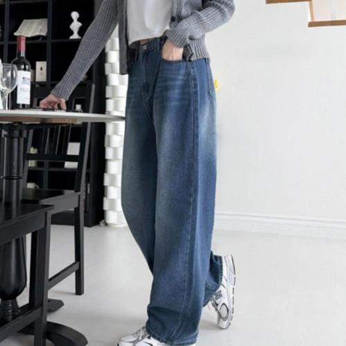 [신상오픈런]|CCP90F8|여성용 캐주얼 뒷밴드 배기 스타일 커브드 와이드 청바지