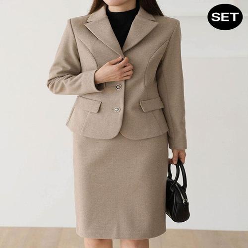 SET 여성 데이 겨울 플랩포켓 정장 자켓+스커트 세트