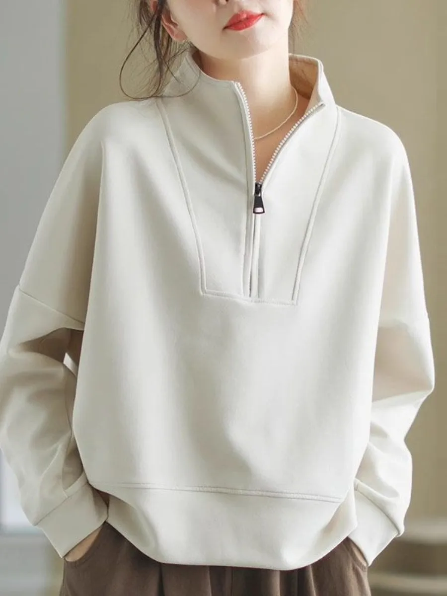 비즈니스 캐주얼 후드티 여성 가을 겨울 하프 집업 긴팔 스탠드 칼라 오버코트 루즈핏 탑 큰 주머니 스카프 포함