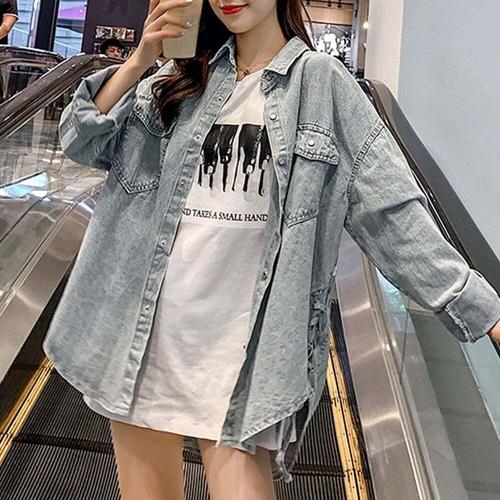 [셀럽하우스]여자 CXTV5532 긴팔 캐주얼 셔츠 루즈핏 청 봄 남방