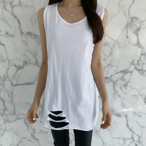 모달 V넥 민소매 옆트임 티셔츠 빅사이즈XXXL까지 9가지 컬러