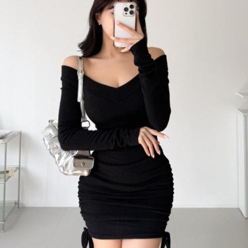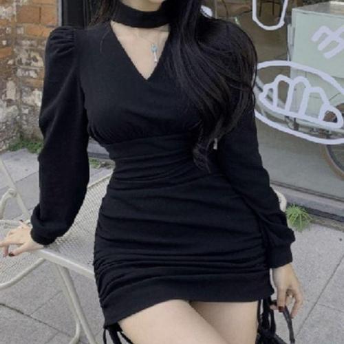 [옷자락]여성 브이넥 밑단 조임 파티 스타일 미니 드레스