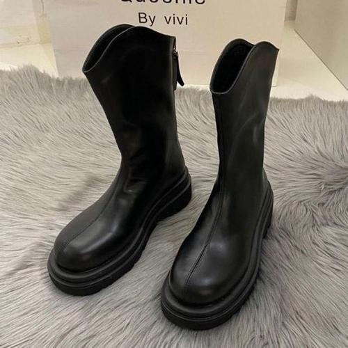 [에이치플러스몰]모던 여성 미들 부츠 뒷지퍼 여자 레더 미들부츠 겨울신발 여자 가을신발 여성 부츠 미..