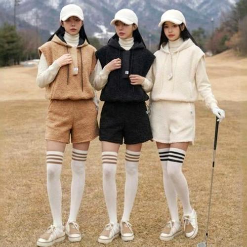 [원온골프]원온양털후드세트 골프조끼반바지 겨울 여성골프웨어