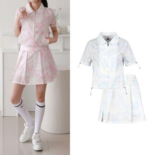 [보스케]MARIO 여성 여름 골프웨어 반팔 집업 큐롯 스커트 세트 BQ52163