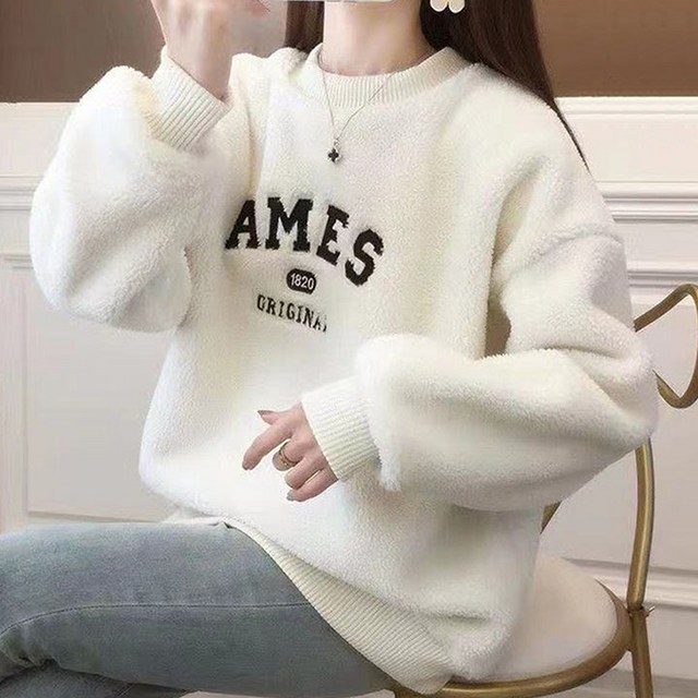 후쿠호 여성 와일드 캣츠 기모 맨투맨 라운드넥 티셔츠 캐주얼 겨울 봄 가을 긴팔