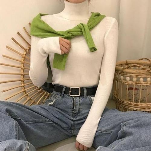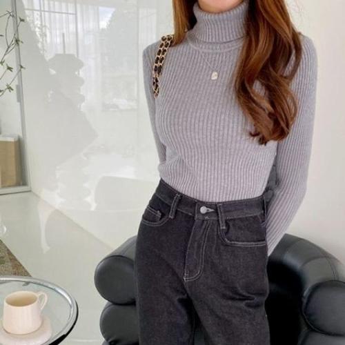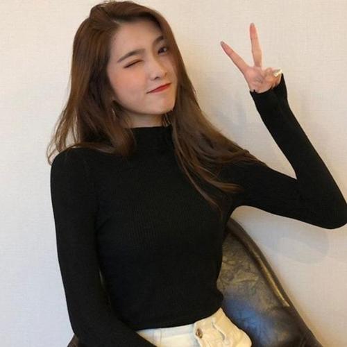 봄 가을 여성 목폴라티 프리미엄 터틀넥 니트 슬림핏 반목 간팔티 캐주얼 여자 얇은 긴팔 티셔츠 YJW