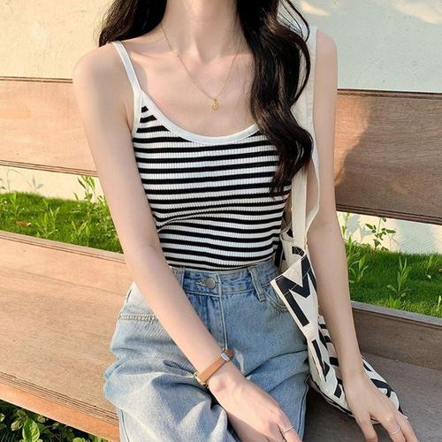 단독 레이어드 스트라이프 민소매 짱짱 스판 나시티 WFIZKNQ