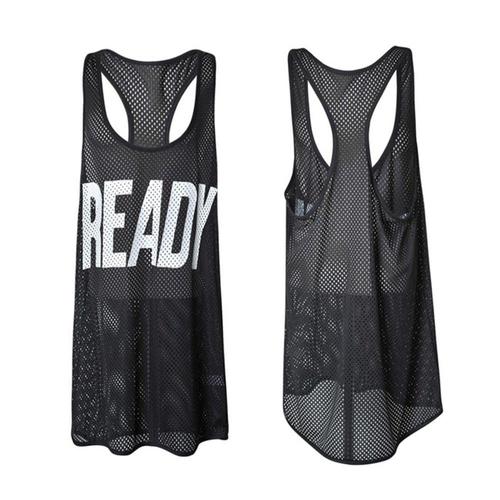 [에이치플러스몰]레터링 메쉬 레이어드 롱 나시티 블랙 1P 요가 운동복