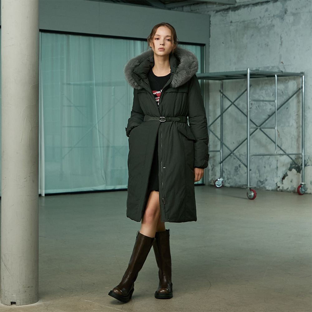 인퀼팅 벨티드 폭스퍼 구스 롱다운 ER4TD006