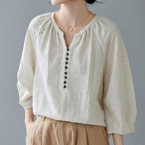 [옷자락]여성 일상복 편안한 리넨 셔츠