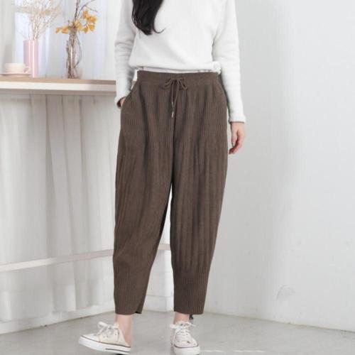여성 기모안감 골덴 코듀로이 배기핏 밴딩팬츠