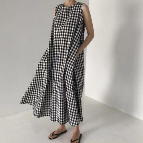이쁘다요 빅사이즈 체크 롱 원피스 민소매 WFLMEVF