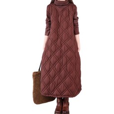 [애비뉴투지]엄마옷 솜 세로 줄 누빔 퀼팅 패딩 여성 라운드 겨울 조끼 주머니 롱 원피스 빅사이즈 K0340..