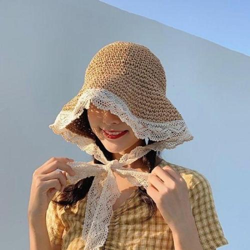 레이스 여성 밀짚 모자 여름 라탄 끈 썬햇 WFIL33C