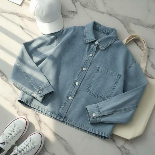 [라일리여성의류] Rly 간절기 크롭 버튼 청자켓 오버핏 데님 재킷