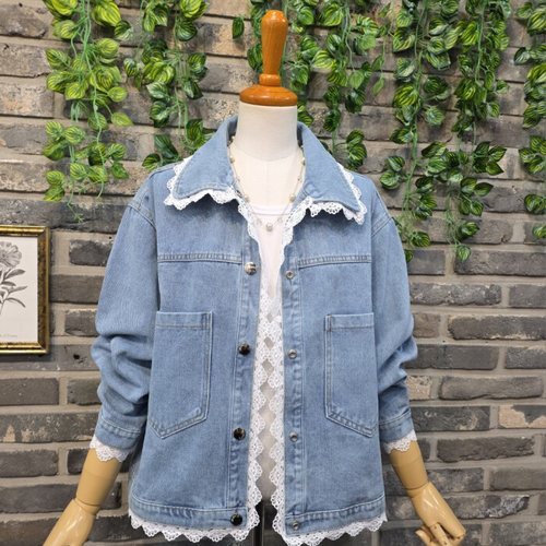 퐁당 / 루즈핏 둥근 레이스 라인 청자켓