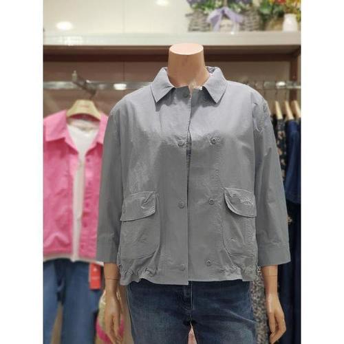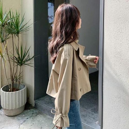 여자 폴리 크롭 더블버튼 루즈핏 트렌치코트