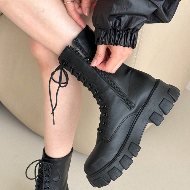 여성 레이스업 워커힐 미들굽 키높이 스트릿 캐주얼