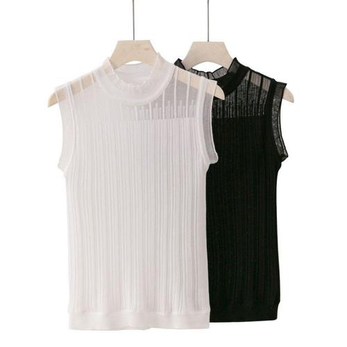 [에이치플러스몰]민소매 나시 니트 티셔츠 골지 정장 이너 여름 출근룩