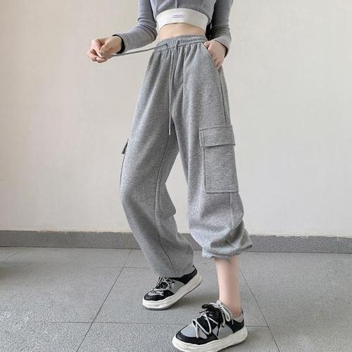 1+1 여성 카고 팬츠 캐주얼 봄 가을 하이웨이스트 조거 바지 루즈핏 기질 스포츠 카고 팬츠 ZZL